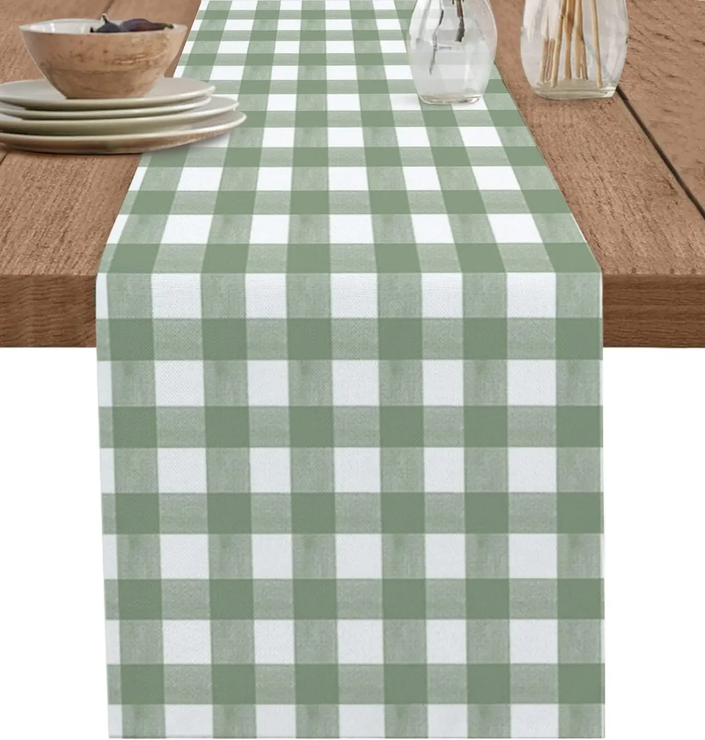 Green Buffalo Plaid Linen Table Runner Dress Scarves Table Decor Farmhouse Kitchen Dining Table Runners Holiday Party Decoration