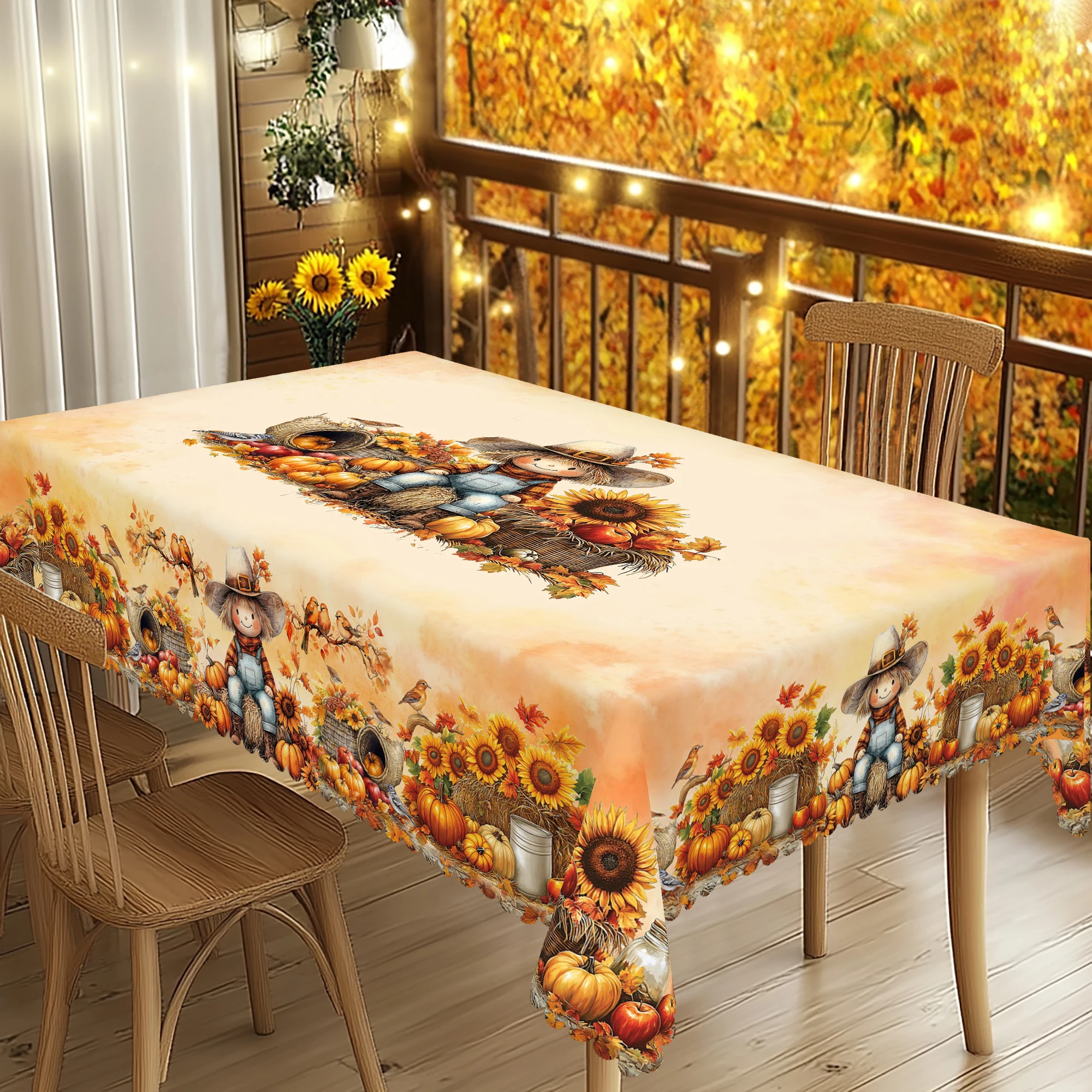 Gnizama Fall decoration autumn thanksgiving polyester rectangular round tablecloth with pumpkin, scarecrow, pattern design,