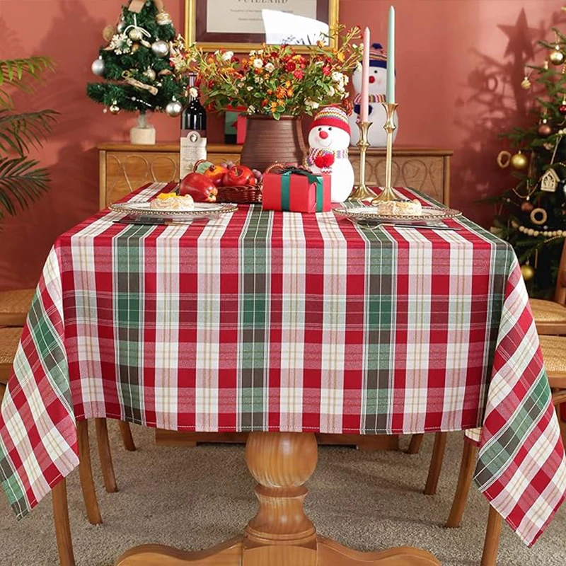 Christmas Gold Line Plaid Polyester Wrinkle-Resistant Washable Reusable Tablecloth for Holiday Parties Restaurants Kitchen