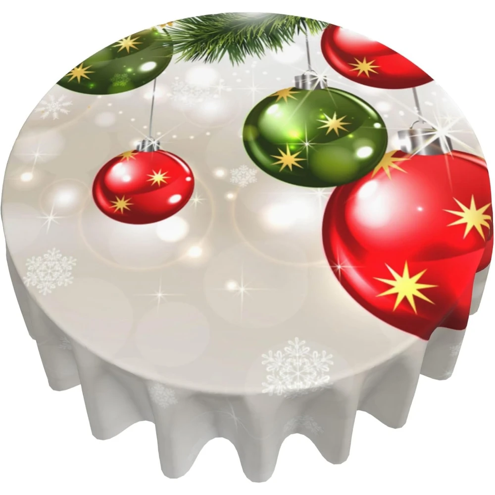 Round Polyester Tablecloths 50 Inch, Christmas Tree Decor Ball Decorative Tablecloth, Splashproof Washable Fabric Table Clothes