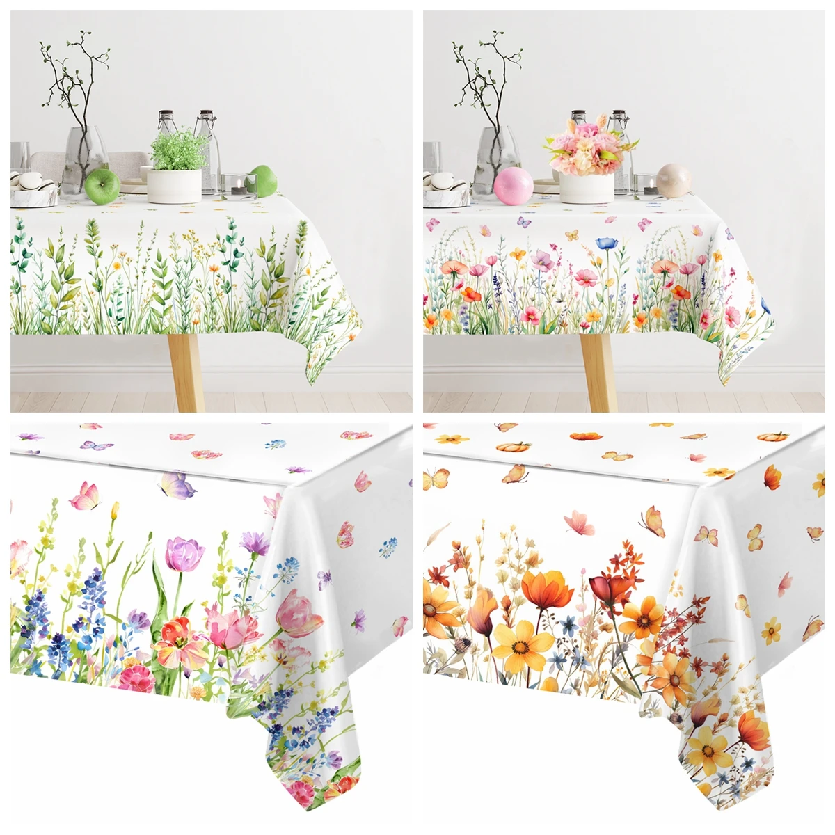 Spring Butterfly Floral Tablecloth Disposable Table Cover for Home Summer Picnic Dining Holiday Wedding Birthday Party Decor