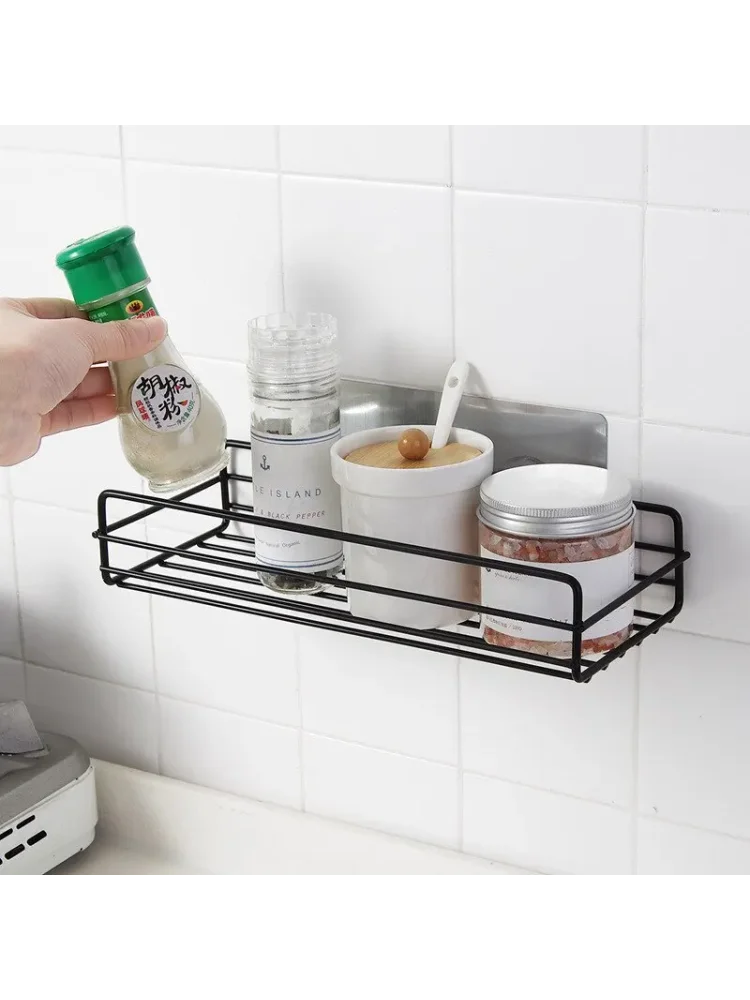 Bathroom Storage Rack Kitchen Organizer Shelf Black Shelves Corner Frame Iron Shower Punch Free Mounted Caddy Rack  Read more