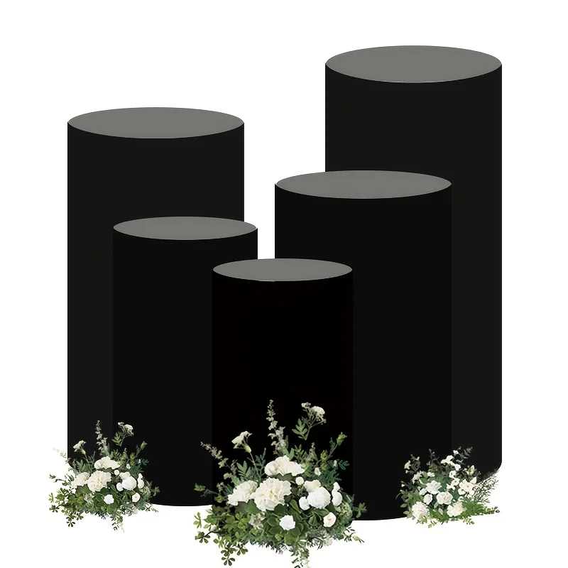 Only cover 5pcs/set Cylinder Pedestal Stand Covers Flexible Cylinder Pillar Dessert Stand Cloth Covers For Party Wedding