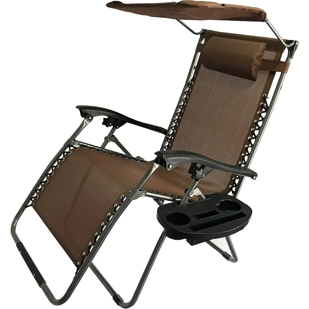 Decor Extra Large Oversized XL 3-in-1 Zero Gravity Chair Patio Adjustable Recliner with Canopy Sunshade and Cupholder (Brown)