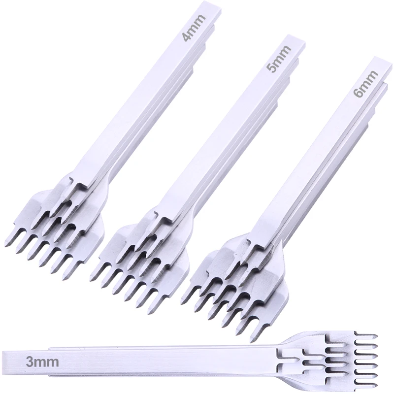 4 Pcs Quality Leather Craft Tools Hole Punches Stitching Punch Tool Set 1+2+4+6 Prong Leather Tools Set
