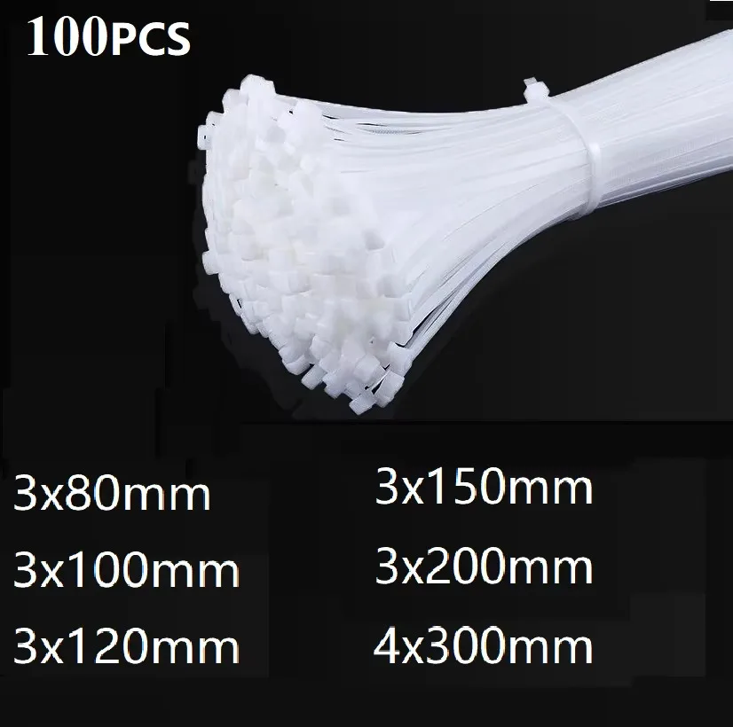 100Pcs 3X80/100/120/150/200mm 4X300mm Nylon White Black Milk Cable Wire Zip Ties Self Locking Cable Tie