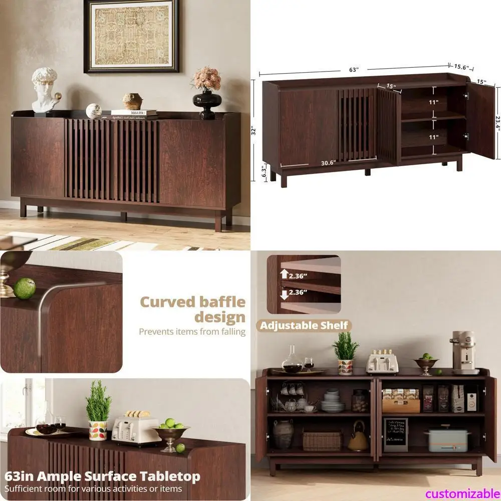 Mid-Century Modern Buffet with Grille Doors and Adjustable Shelves, Storage Cabinet for Kitchen and Dining Room
