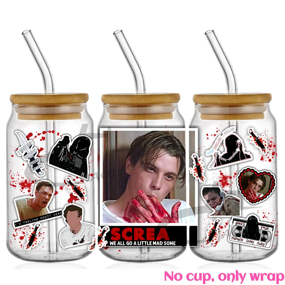 Halloween Movie Stickers 16oz UV DTF Cup Wrap Beer Glass Can Libbey DIY Sticker Scary Faces  Read more