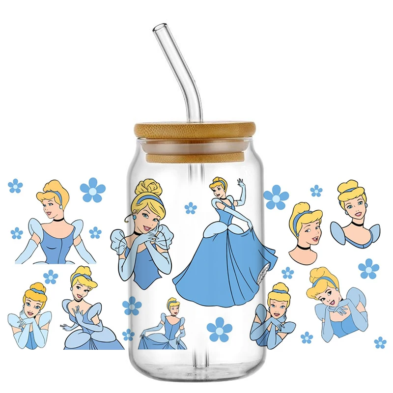 Miniso Belle Princess 16OZ UV DTF Cup Wraps Transfer Sticker For Glass Libbey Can Bottle Self Adhesive Washable DIY Custom