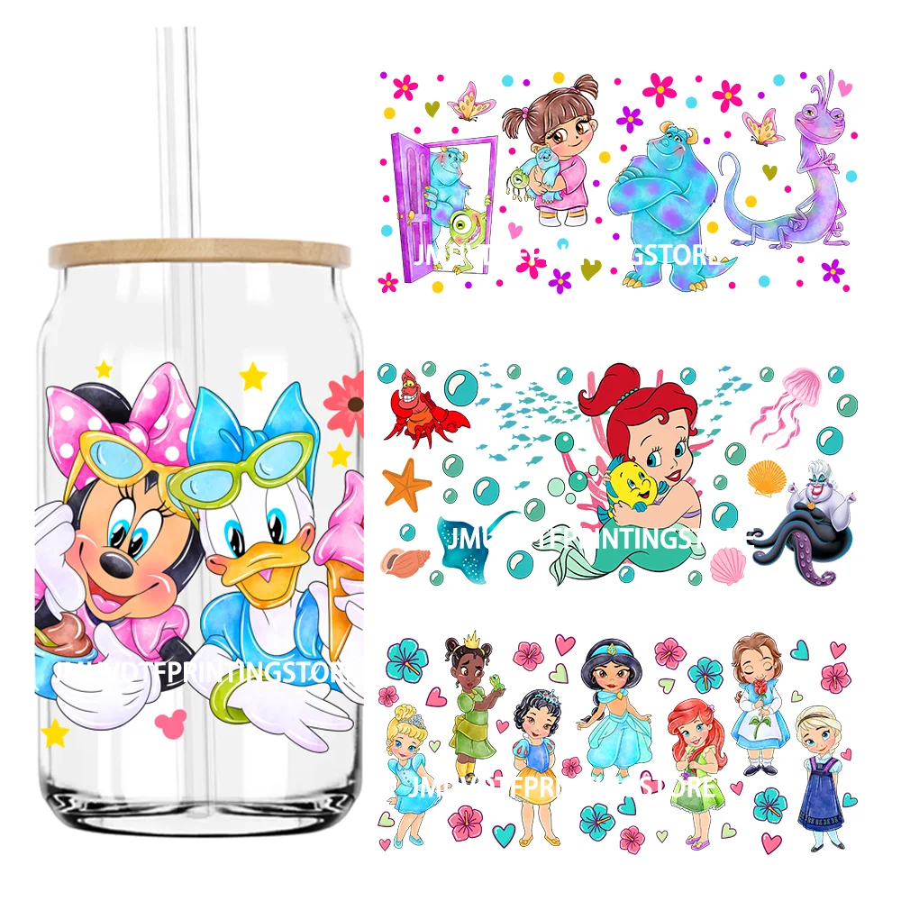 Miniso Disney Hybrid Cartoon Design UV DTF Cup Wrap For 16oz Libbey Beer Glass personalizat DIY Sticker Selfadhesive Washable