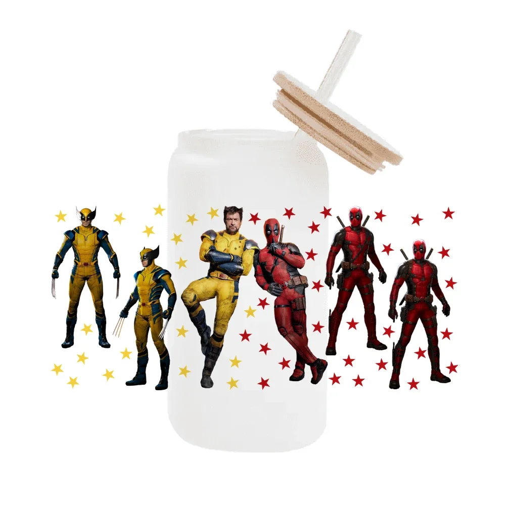 Disney Marvel Deadpool and Wolverine cartoon For Libbey 16oz Can Glass 3D Waterproof UV DTF Coffee Can Wrap Libbey Glass Wrap