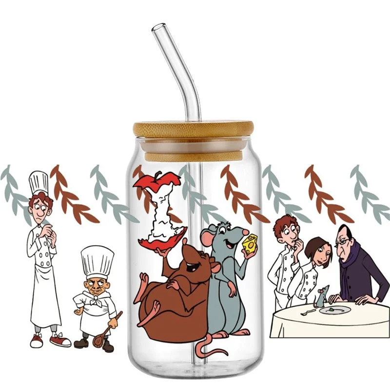 Miniso Cartoon Ratatouille Pattern UV DTF Transfer Sticker Waterproof Transfers Decals For 16oz Glass Cup Wrap Stickers