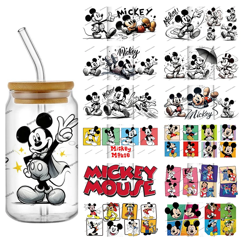 New 38 Mixed Design Disney Retro Mickey Minnie 16oz UV DTF 3D Sticker Decals Wraps Glass Can Cups Creative Craft DIY Gifts