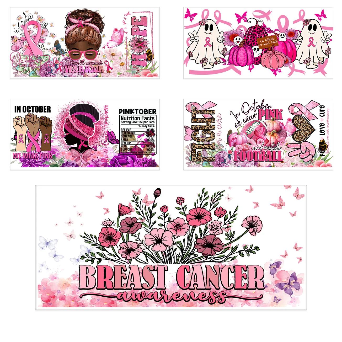 Pink Ribbon Affirmation Cup Wraps Decals for 16oz Libbey Glass Breast Cancer Awareness 3D Transfer Stickers UV DTF Cup Wraps