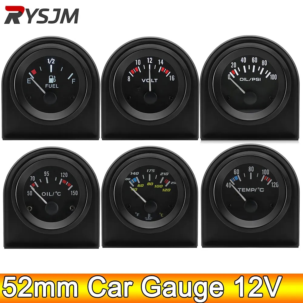 AD 52mm Oil Pressure Gauge with Oil Press Sensor 1/8NPT 100 PSI 12V Car Water Temp Oil Temperature Gauge Fuel Level Gauge Volt