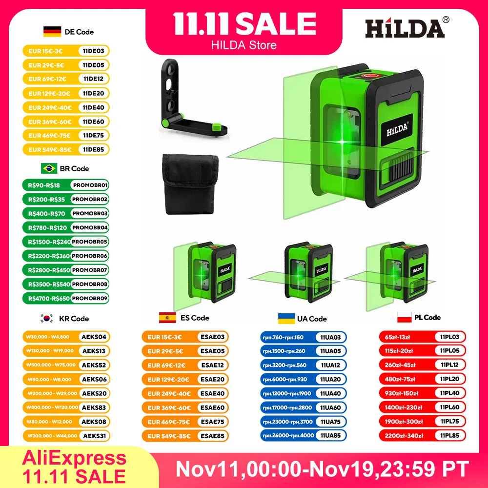 Hilda 2 Mini Lines Laser Level Self Levelling Green Beams Laser Horizontal & Vertical Cross-Line  Read more