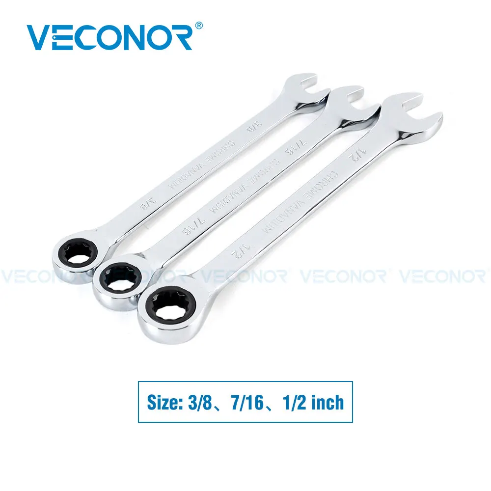 3/8 7/16 1/2 Inch Ratchet Wrench Set of Keys High Torque Spanner Tool 72-Tooth Imperial Size Mirror Surface Polished