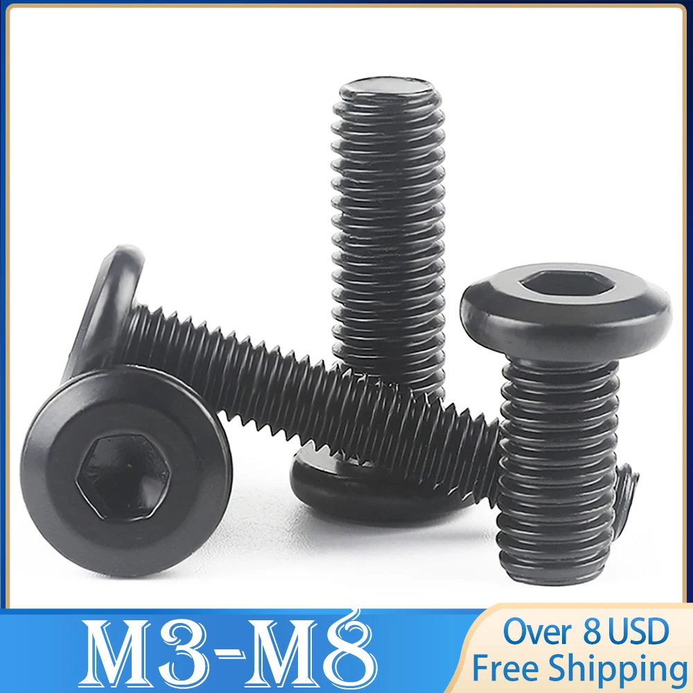 1-100pcs Black Grade 10.9 Steel M1.6 M2 M2.5 M3 M4 M5 M6 M8 M10 M12 Hex Socket Round Button Head Screws ISO7380  Read more