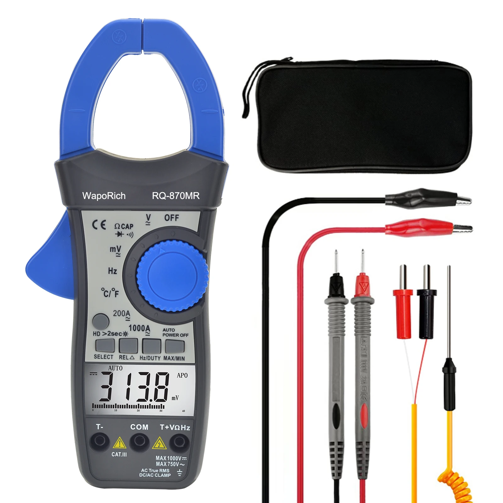 Clamp Multimeter TRMS Auto-Ranging, 4000 Counts AC/DC Voltage Current Meter, Temp Frequency Capacitance Diode Continuity Tester