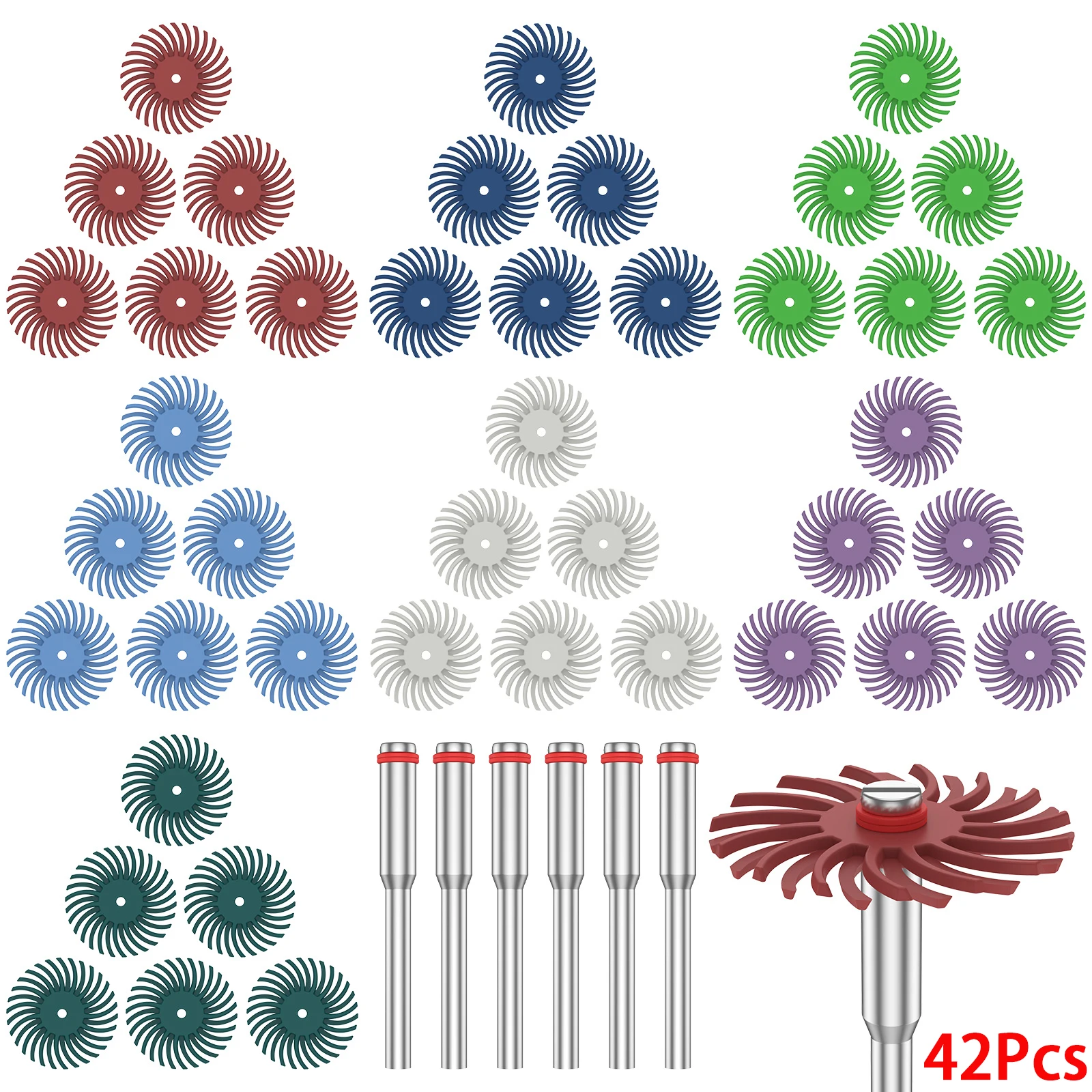 42Pcs Radial Bristle Disc Kit Abrasive Brush 3mm Shanks Elastic Detail Polishing Abrasive Wheel for Rotary Tool Accessories
