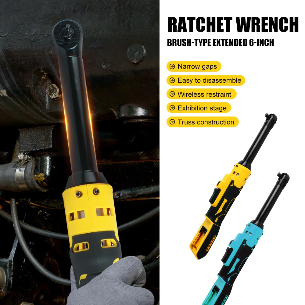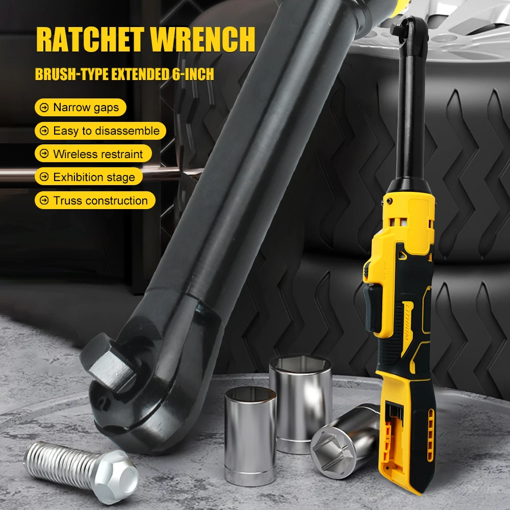 6-Inch Extension Electric Wrench 21V Lithium-Ion 3/8″ Ratchet Wrench Ratchet Tool Compatible with Dewalt or Makita Batteries