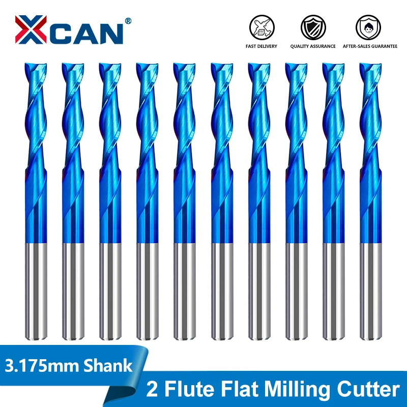 XCAN Flat End Mill 10pcs 3.175mm Carbide Milling Cutter 2 Flute Straight Shank End Router Bit Mill