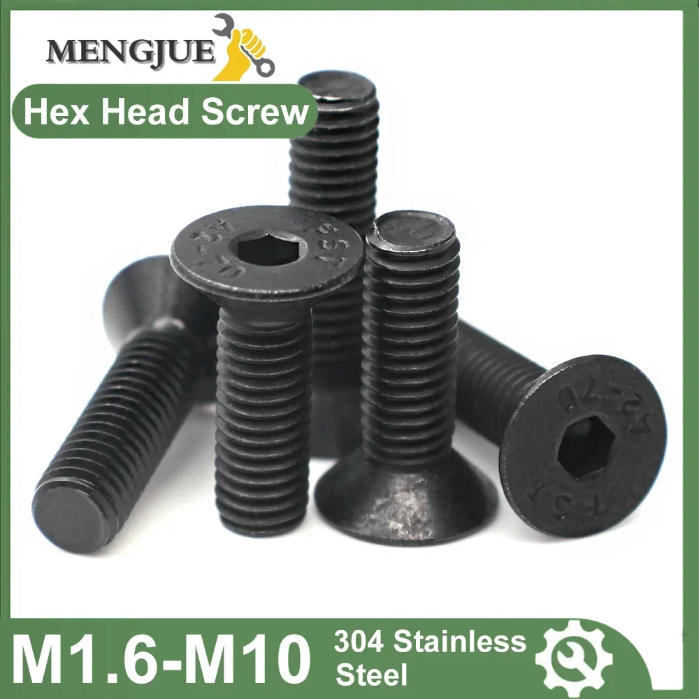 M1.6 M2 M2.5 M3 M4 M5 M6 M8 M10 Black 304 A2-70 Stainless Steel Hex Hexagon Socket Flat Countersunk Head Machine Screw Bolts