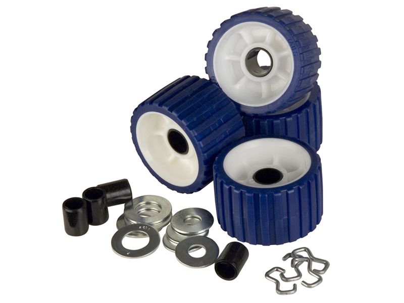 C.E. Smith Ribbed Roller Replacement Kit - 4-Pack - Blue 29320. E. Smith Ribbed Roller Replacement Kit Blue TPR Zinc plated washers & clips Kit includes:Four 5" diameter x 3" wide ribbed rollers to fit 1-1/8" shaftWith polypropylene hubs Four Delrin...  Read more
