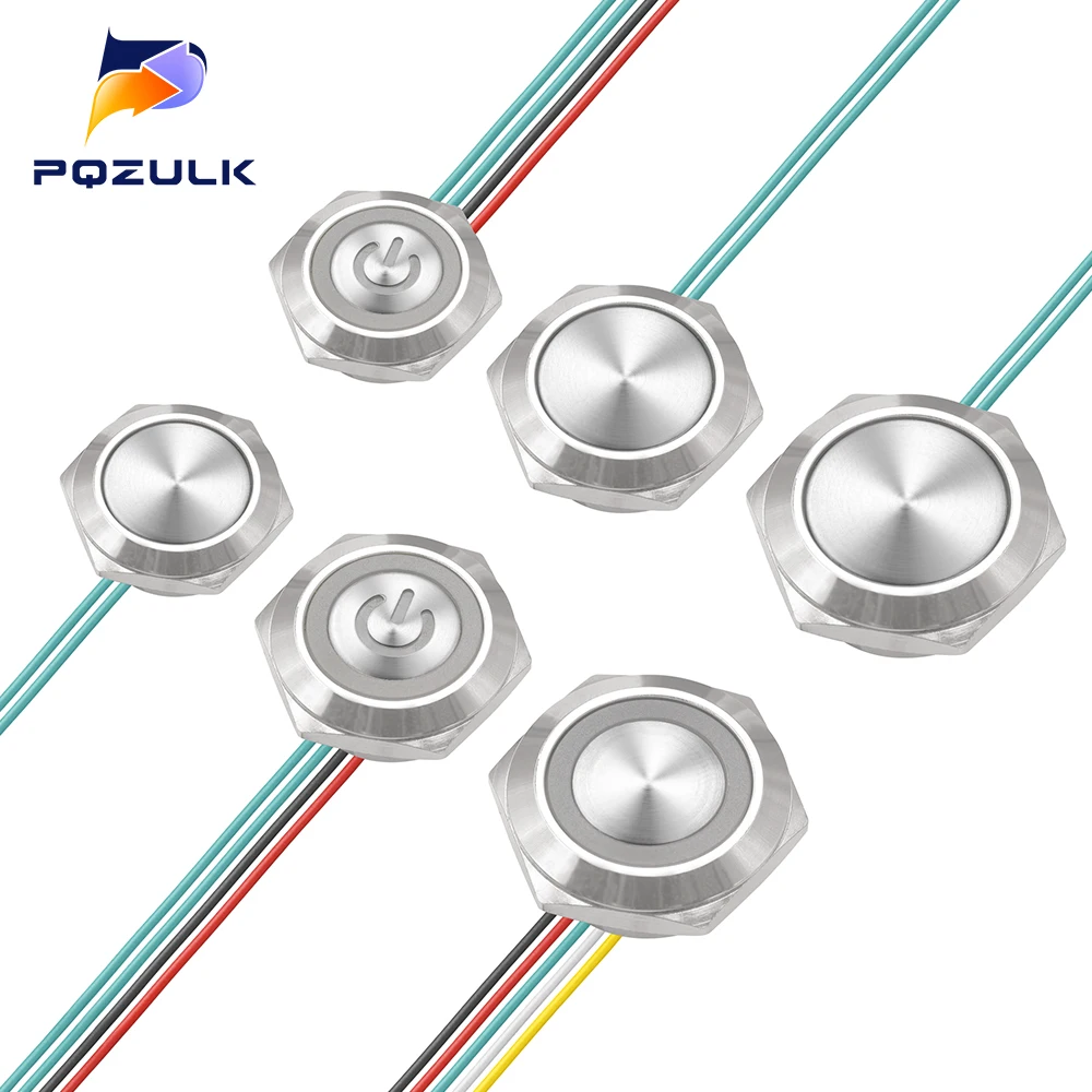 Ultra Short Push Button Switch Waterproof 16/19/22mm 12V 24V led light Momentary Self-reset Wiring Buttons without fixation