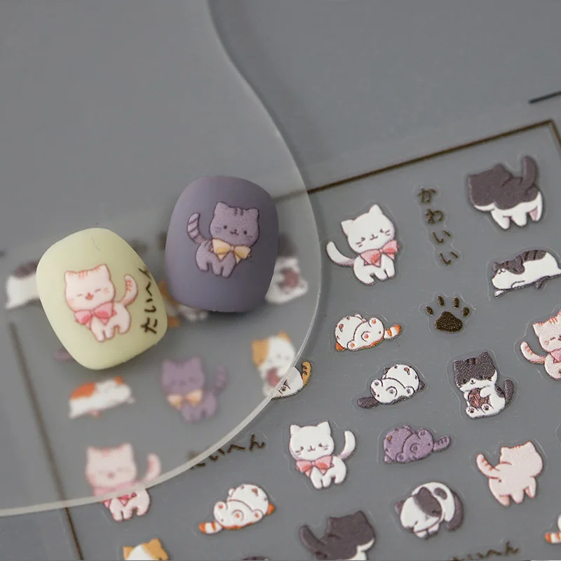 Cute Cartoon Cat 5D Soft Embossed Reliefs Self Adhesive Nail Art Decorations Stickers Lovely 3D Manicure Decals Wholesale