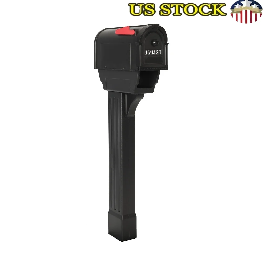 Durable Black Mailbox and Post Kit with Newspaper Port Weather Resistant Heavy Duty Plastic Easy Installation Standard 4x4 Post
