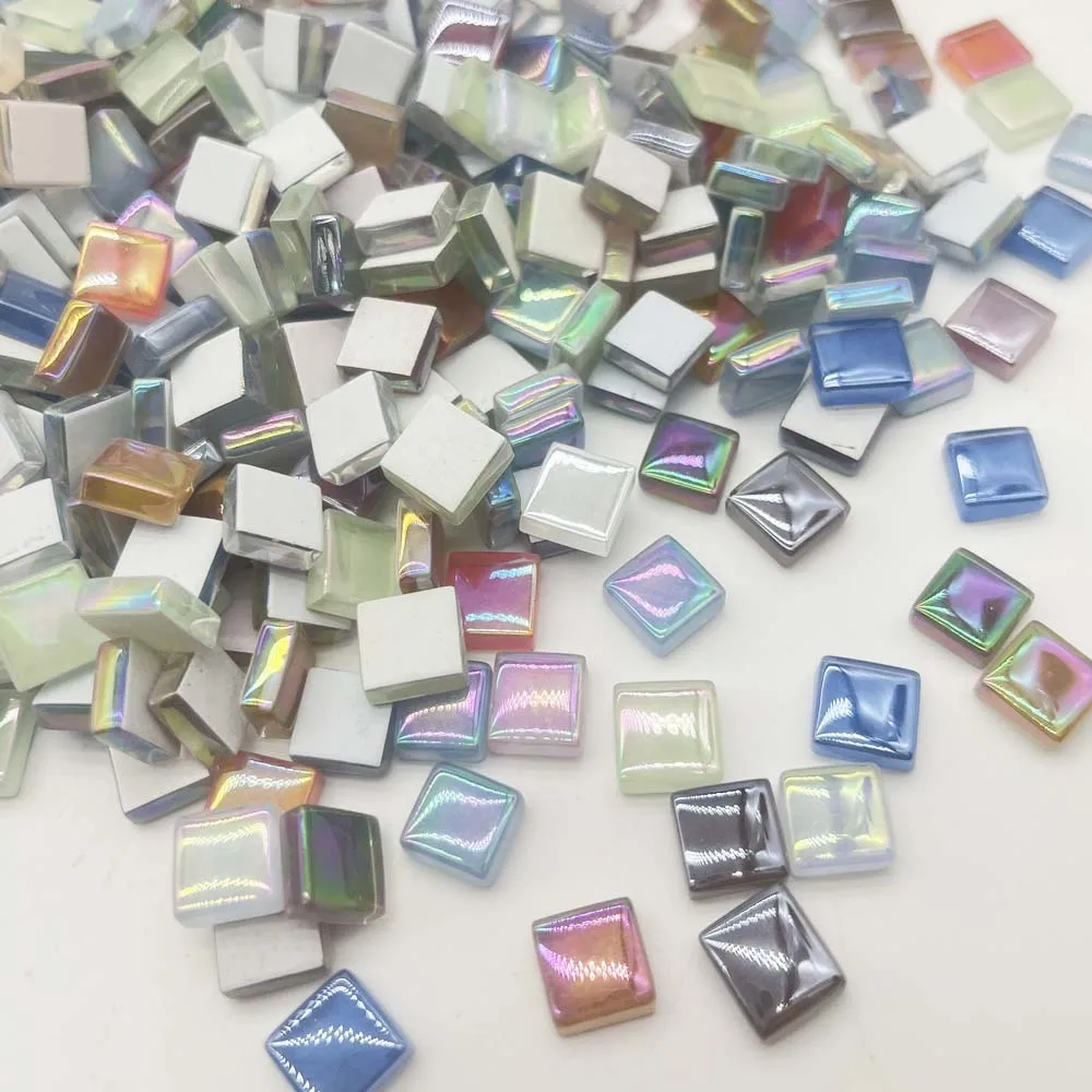 100PCS Shiny Glaze Glass Mosaic Tiles Square Craft Tile Mosaic Making Materials Mosaic Making