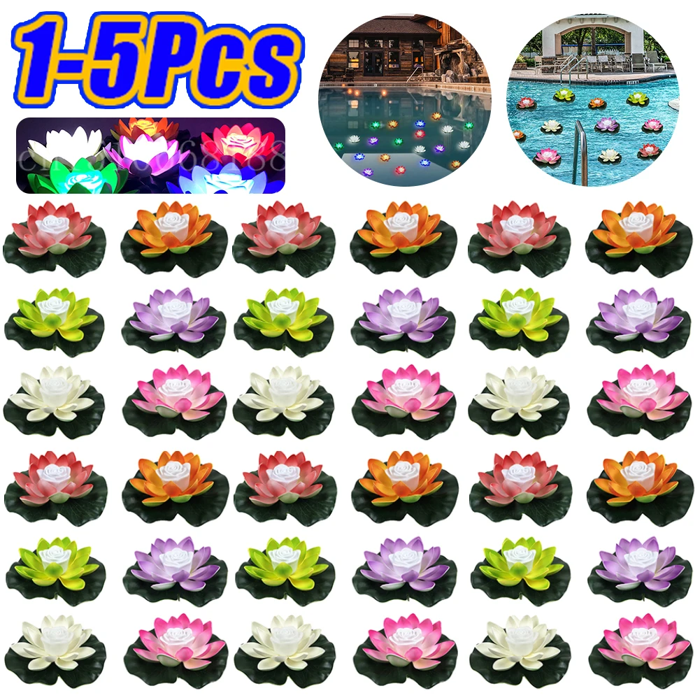 18CM Artificial Lotus LED Water Floating Flower Waterproof Water Lily Night Lamp Pond Pool Garden Fish Tank Fountain Decoration