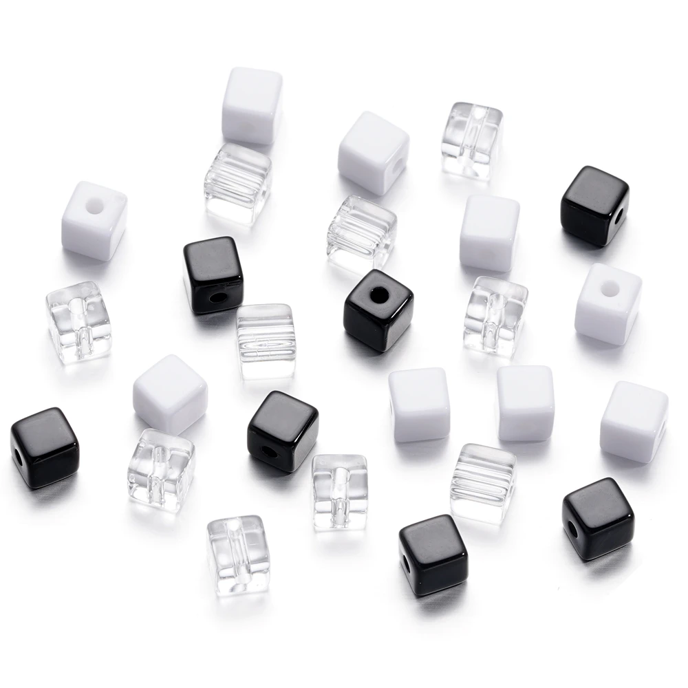 30pcs/lot 7.5mmc Square Acryli Beads Black White Spacer Loose Beads for DIY Necklace Bracelet Jewelry Making Accessories
