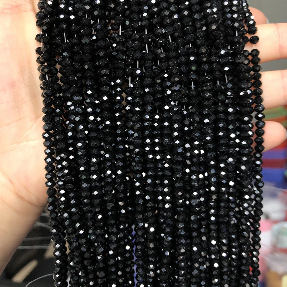 Faceted Black Crystal Glass Beads Loose Round Rondelle Beads For Jewelry Making DIY Bracelet Necklace 4/6/8/10/12mm Wholesale  Read more