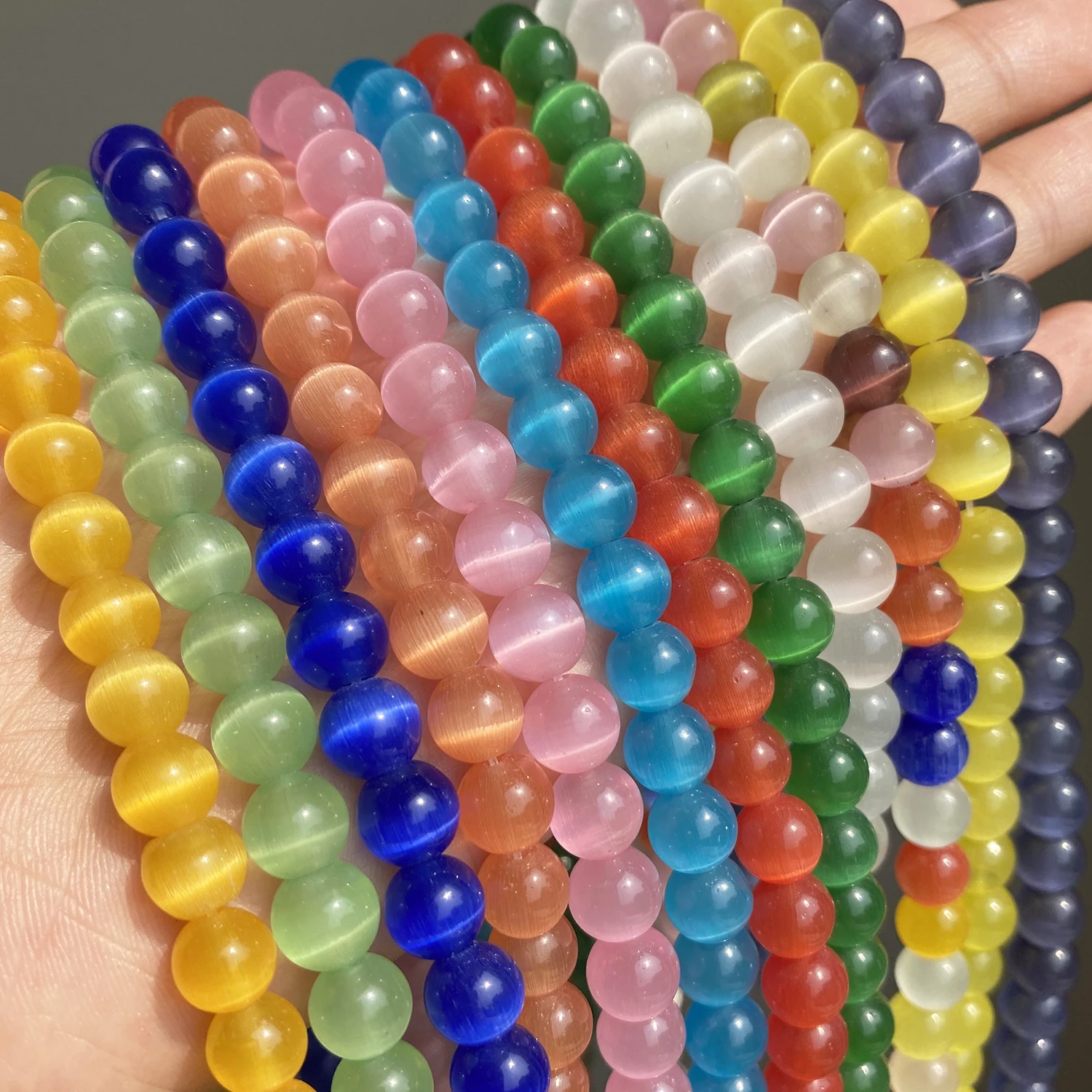 Wholesale Pink White Blue Cat Eye Stone Beads 4 6 8 10 12mm Opal Round Beads For DIY Jewelry Making Bracelet Accessories 15''