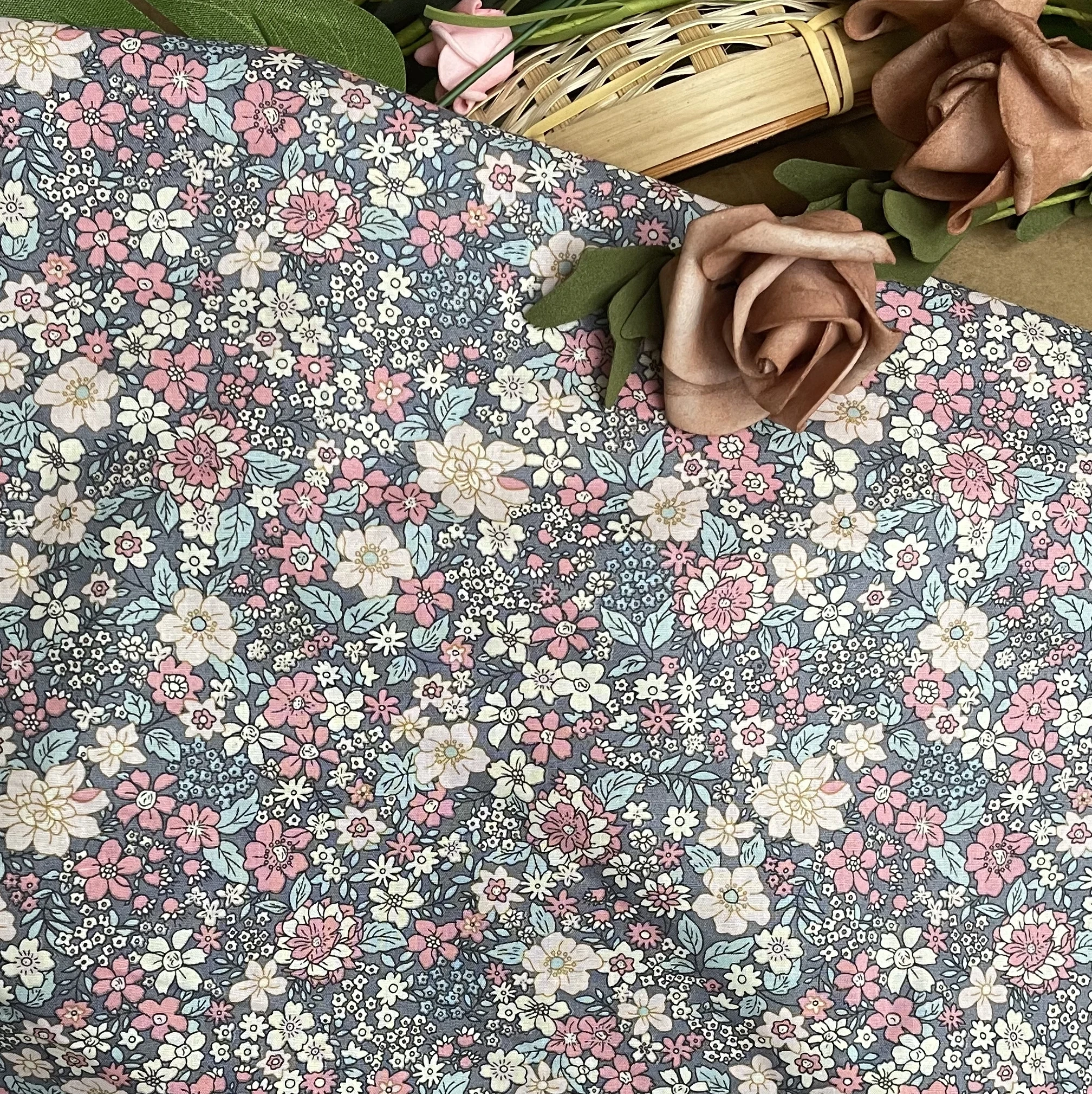 Retro Blue Gray 100% Cotton Poplin 40S Original Design Fabric Digital Printing for Sewing Cloth Dresses Skirt Kids Designer DlY