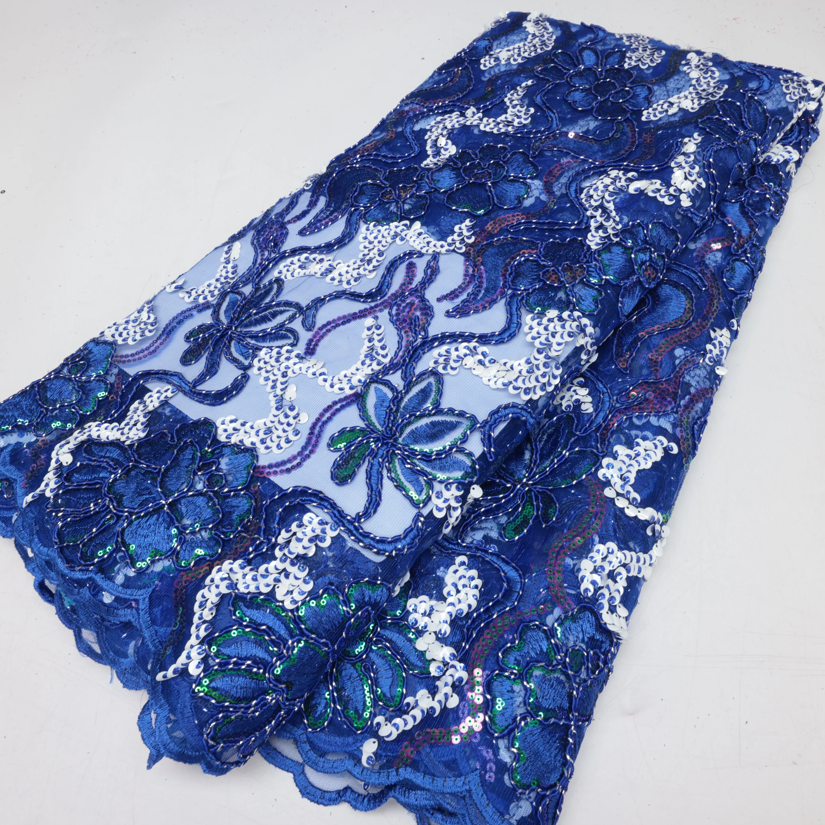 Blue African Rope Lace Fabric 2025 High Quality Embroidery Elegant Nigerian French Lace Fabric With Sequins Lace Material Sewing  Read more