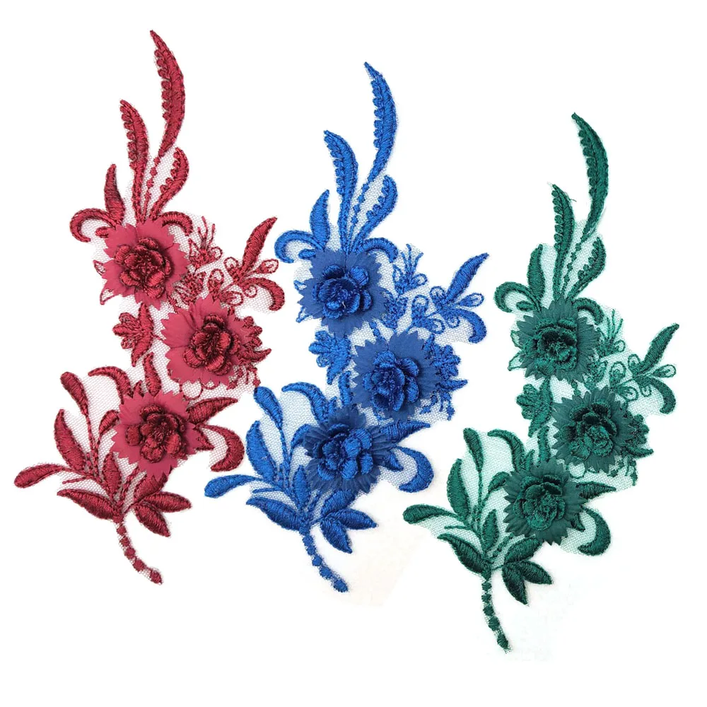 1 Pair Flower Applique Patch Sew On Wedding Blue Embroidery Patches For Clothing Dress