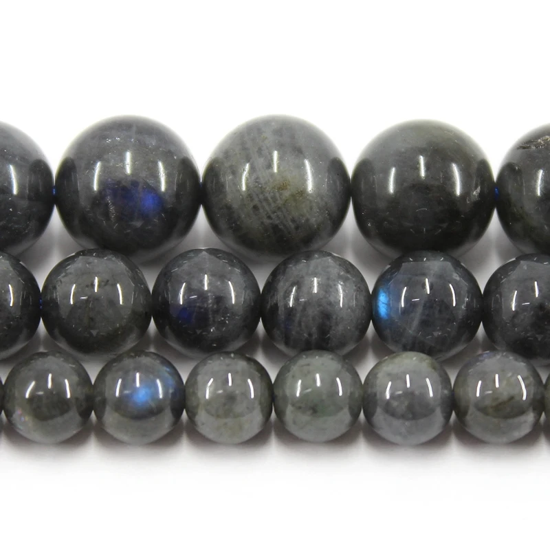 Natural Labradorite Blue Light 6 8 10MM Polish Smooth Round Loose Strand Stone Beads For Jewelry Making Bracelets Necklace