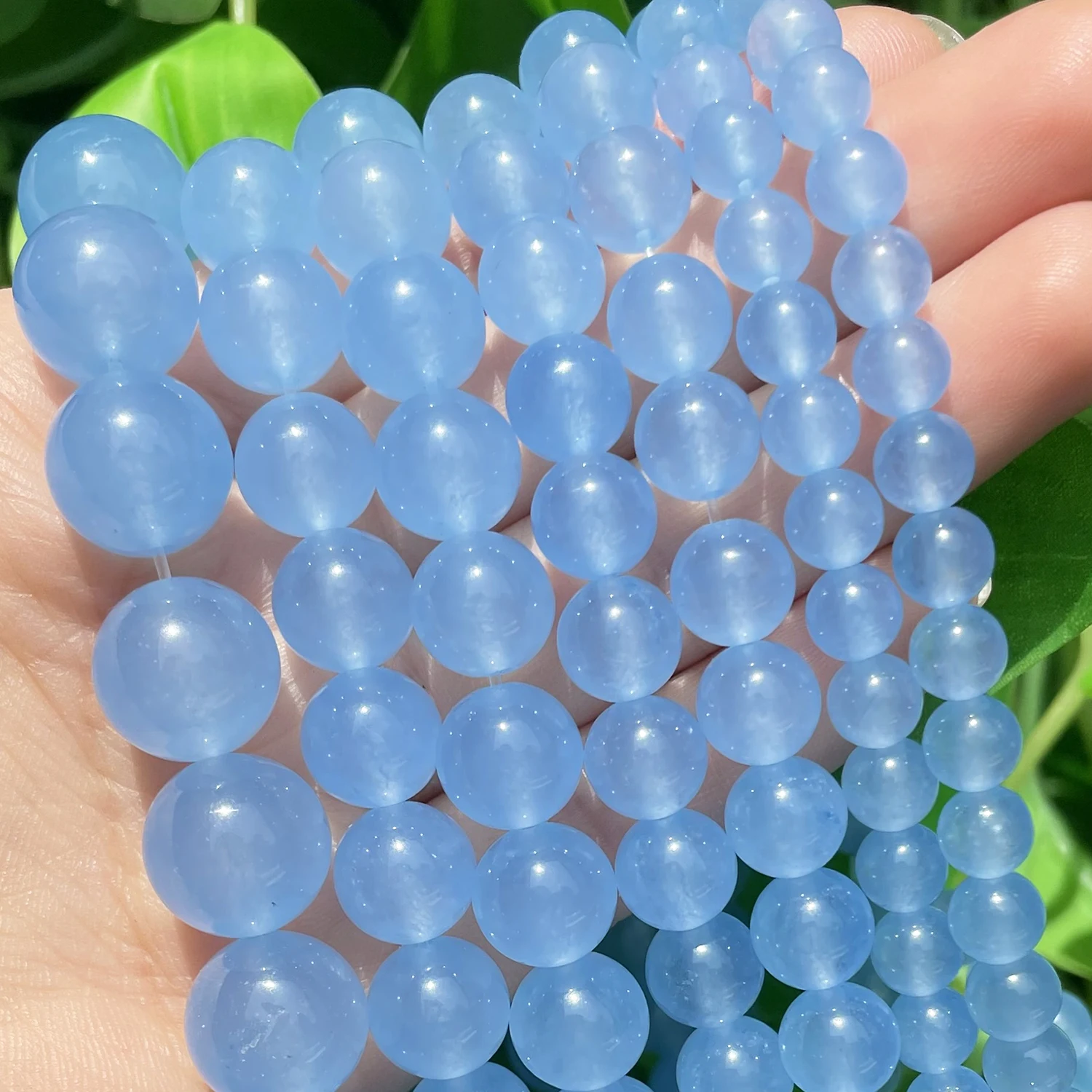 Lake Blue Chalcedony Jades Round Stone Beads Natural Loose Spacer Bead for Jewelry Making Needlework Diy Bracelet Accessories