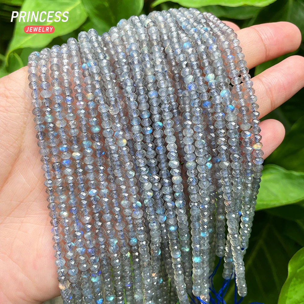 A+ Natural 3*4mm Blue Labradorite Faceted Rondelle Beads for Jewelry Making Wholesale DIY Accessories