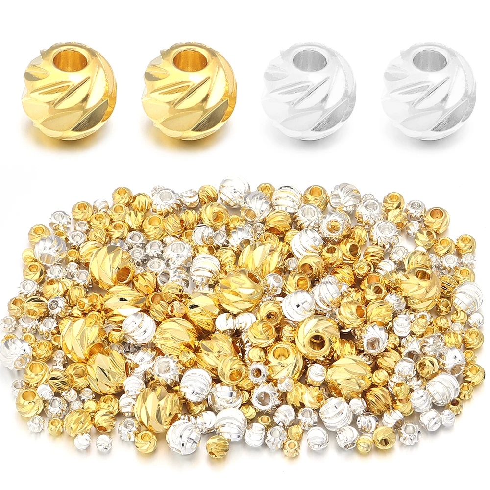 20-100pcs/lot 3-8mm Gold Silver Color Round Stripe Beads Copper Loose Spacer Beads For Jewelry Making DIY Bracelet Necklace