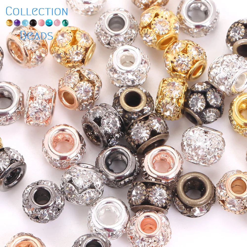 8/10/12mm Big Hole Rhinestone Crystal Beads Copper Loose Spacer Round Rondelle Beads for Jewelry Making DIY Bracelet Accessories