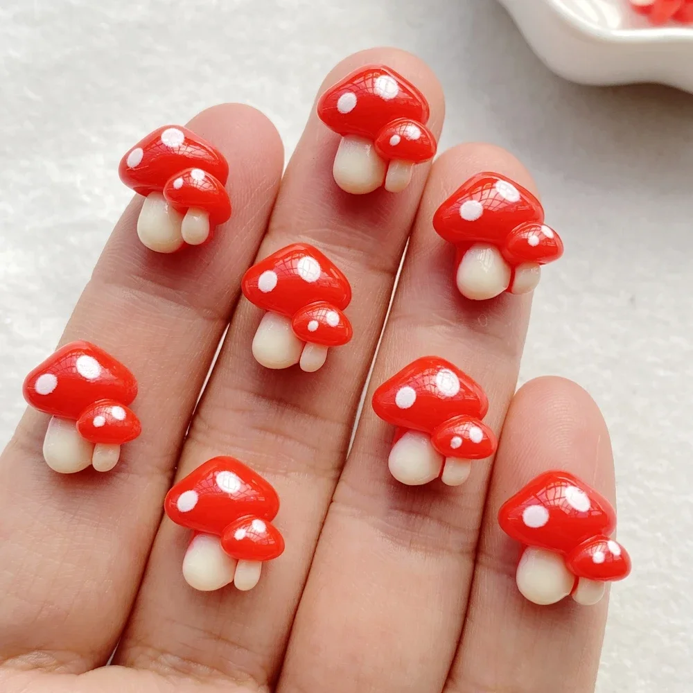 20pcs Red Mushroom Nail Art Resin, Cute Mini Cartoon Designer DIY Crafts for 3D Decoration, Jewelry Making Accessories
