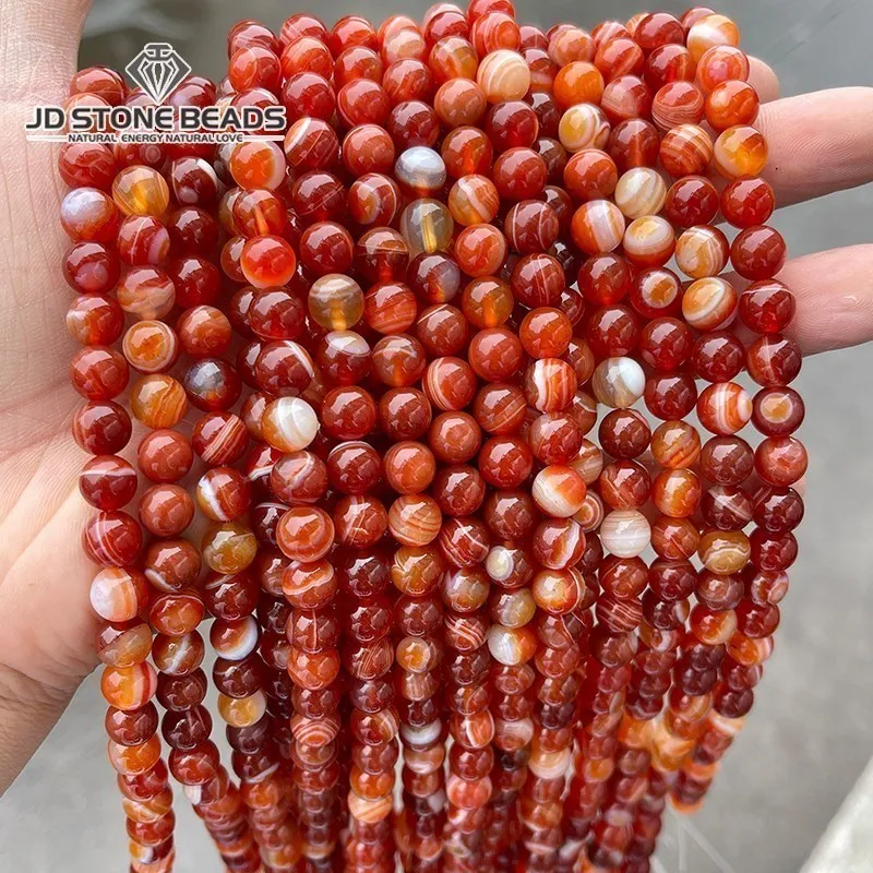 Natural Stone Dyed Color Red Lace Striped Agate Round Loose Spacer Beads 4 6 8 10 12MM For Jewelry Making Diy Bracelet Accessory