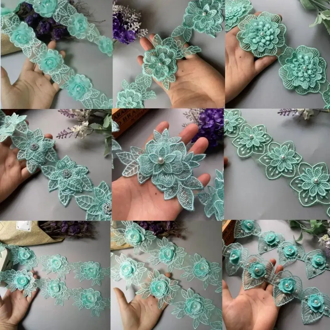 10Pcs/Lot Green Petal Flower Organza Embroidery Fabric Lace Patch Trim Clothes 3D Beading Flower Wedding Dress Diy Applique  Read more
