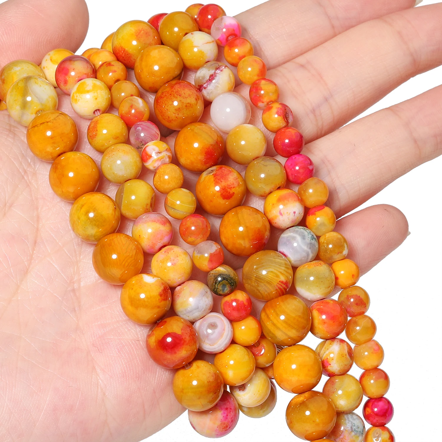 6/8/10mm Natural Stone Beads Light Orange Cracked Agates Round Spacer Loose Beads For Jewelry Making DIY Bracelets Accessories  Read more
