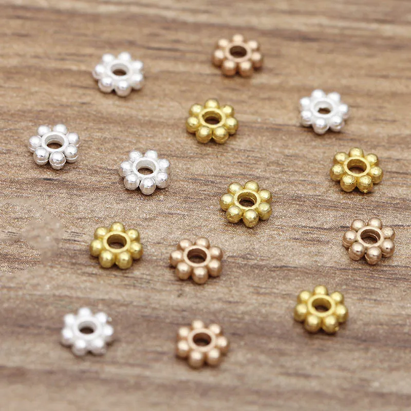 100pcs Daisy Flower Spacers 6mm Flat Bead KC Gold Silver Color 2mm Hole Beads for Diy Jewelry Making Bead Bracelet Accessories  Read more