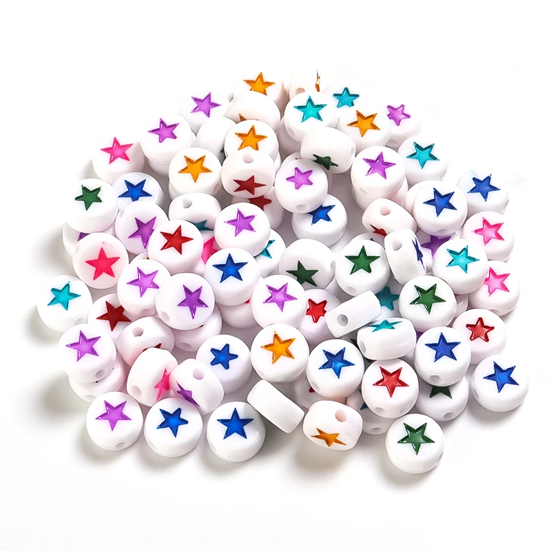 100pcs/lot Acrylic Color Stars Beads Flat Round Loose Spacer Bead for Jewelry Making DIY Necklace Bracelet Beaded Accessories  Read more